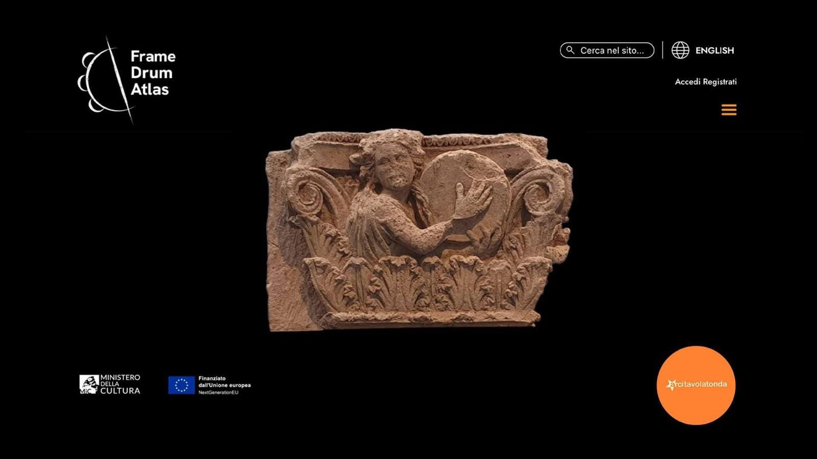 Il Frame Drum Atlas è una piattaforma web che raccoglie documenti iconografici, testuali, materiale audiovisuale e sonoro (www.mediterraneanmusicatlas.it) oltre ad un’installazione multimediale site specific, all’interno della sede di Tavola Tonda (Palermo), che attraverso uno schermo immersivo fornirà all’utente un’esperienza ad alto impatto visivo ed emozionale.